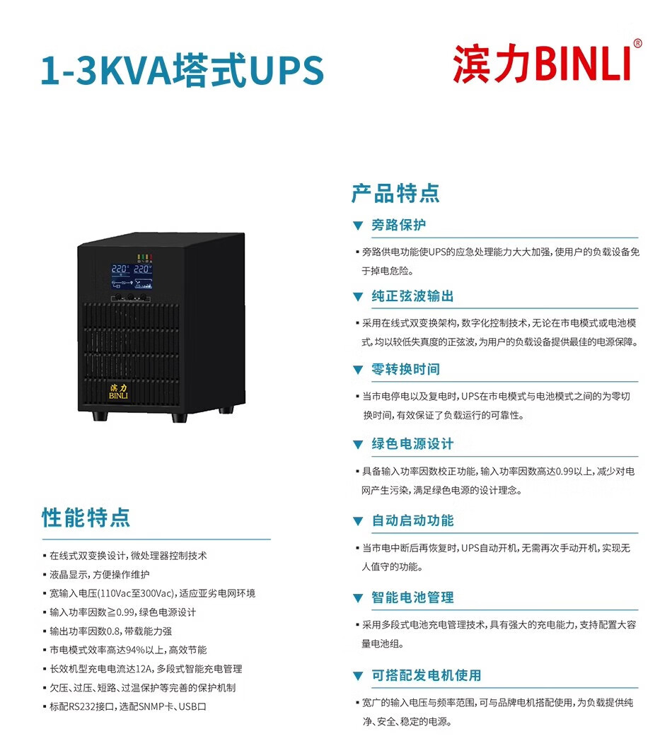 滨力UPS不间断电源在线式1K-10K电脑路由器停电备用
