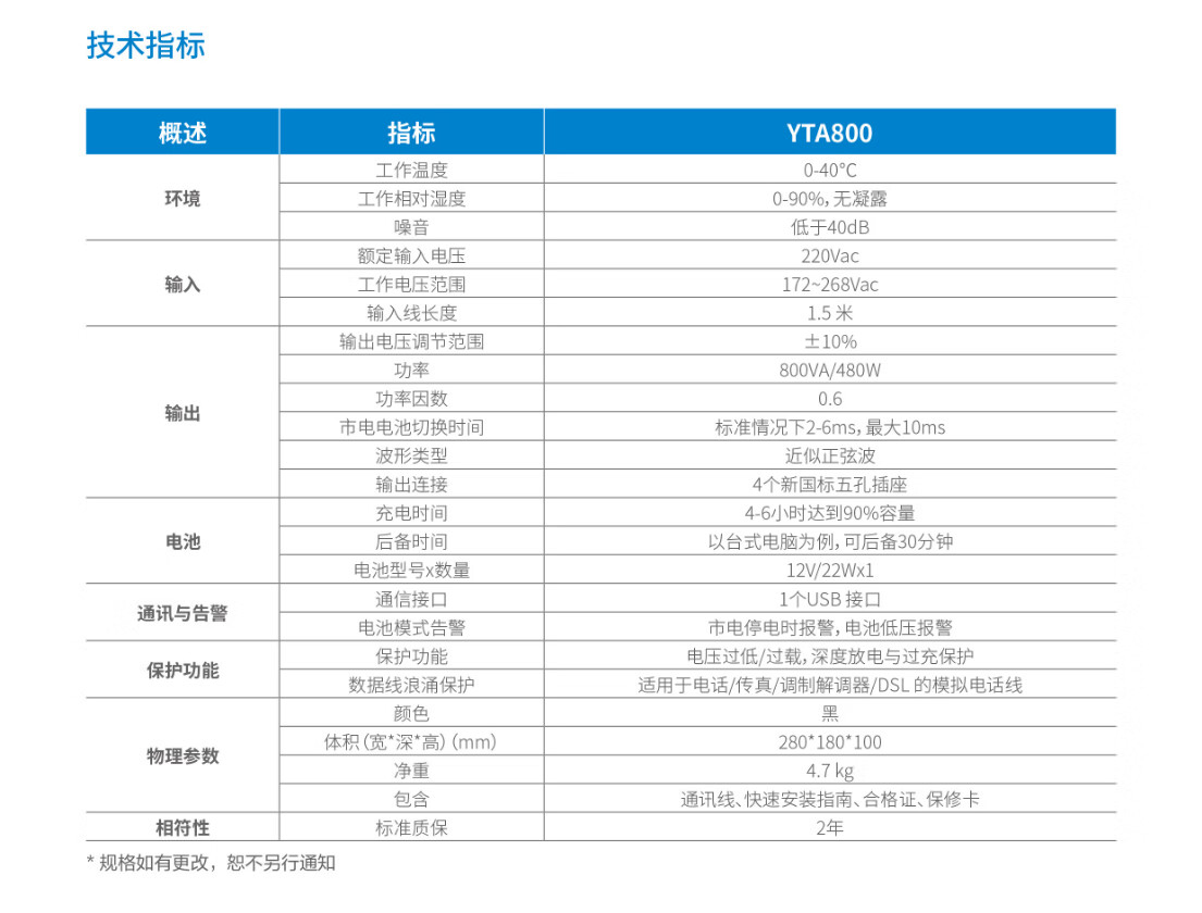 科华UPS不间断电源YTA800系列电脑路由器停电备用