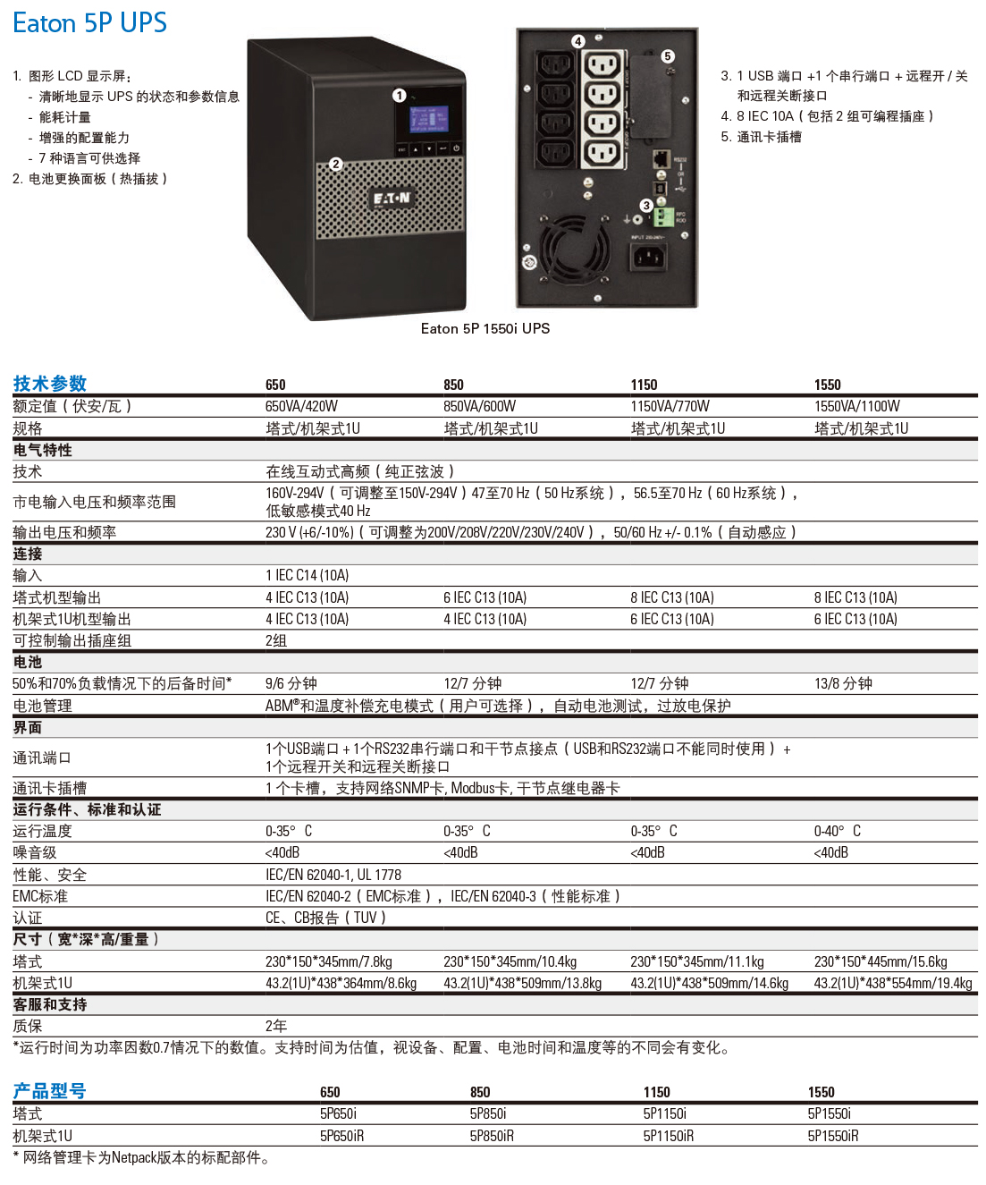 伊顿UPS不间断电源5P系列650I-1550IR企业机房服务器备用电源