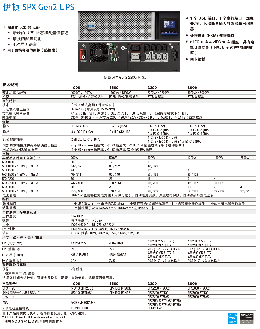 伊顿UPS不间断电源5PX系列1000-3000IRT2UG2企业机房服务器备用电源