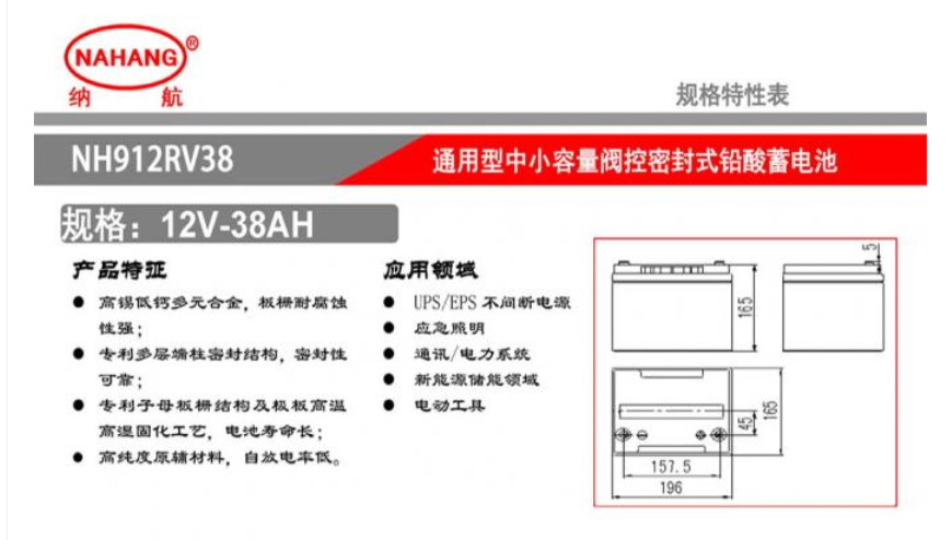 纳航系列12V/7AH-200全型号铅酸免维护蓄电池UPS不间断电源专用电脑路由器停电备用