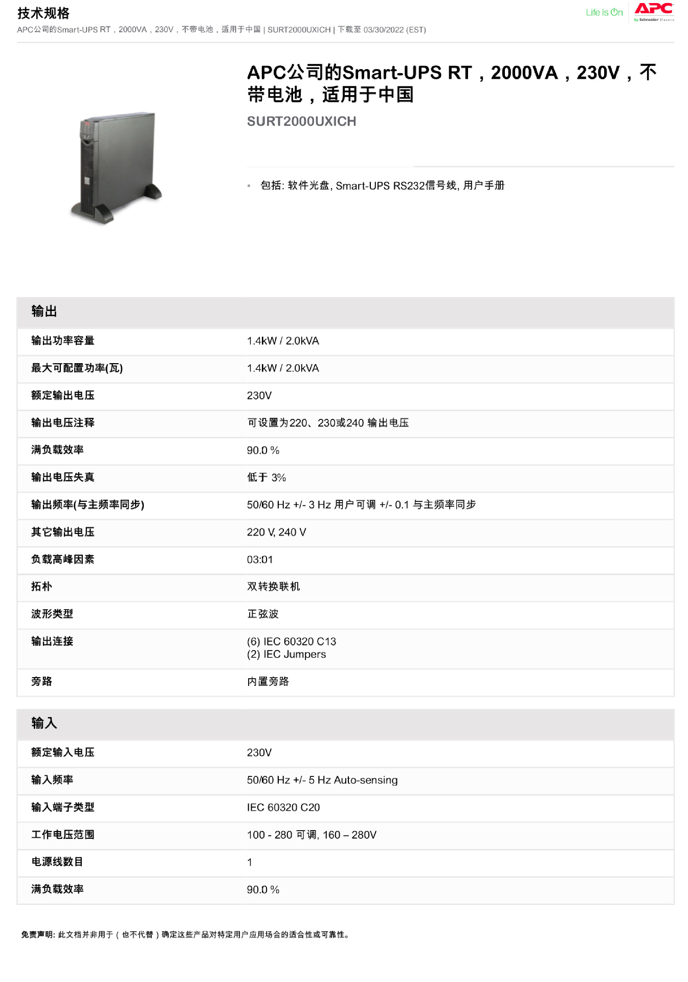 APCUPS电源机架式不间断电源家用办公外配电池SURT2000UXICH1400W