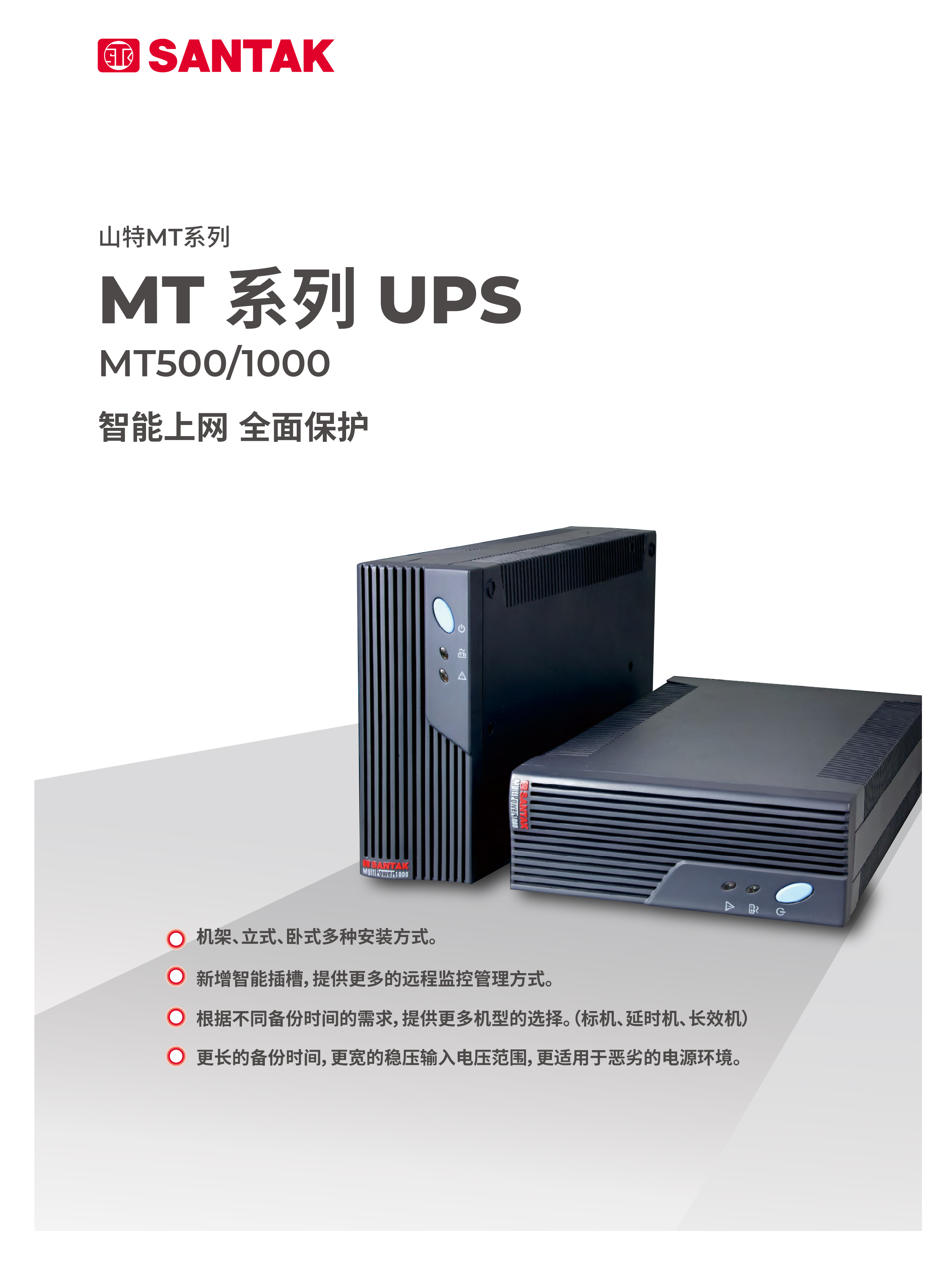 MT- pro系列是智能上网型UPS,可提供各种通讯连接方式的电源管理方案。采用先进的CPU集成控制技术,并拥有超宽电压输入范围和独特的立式、