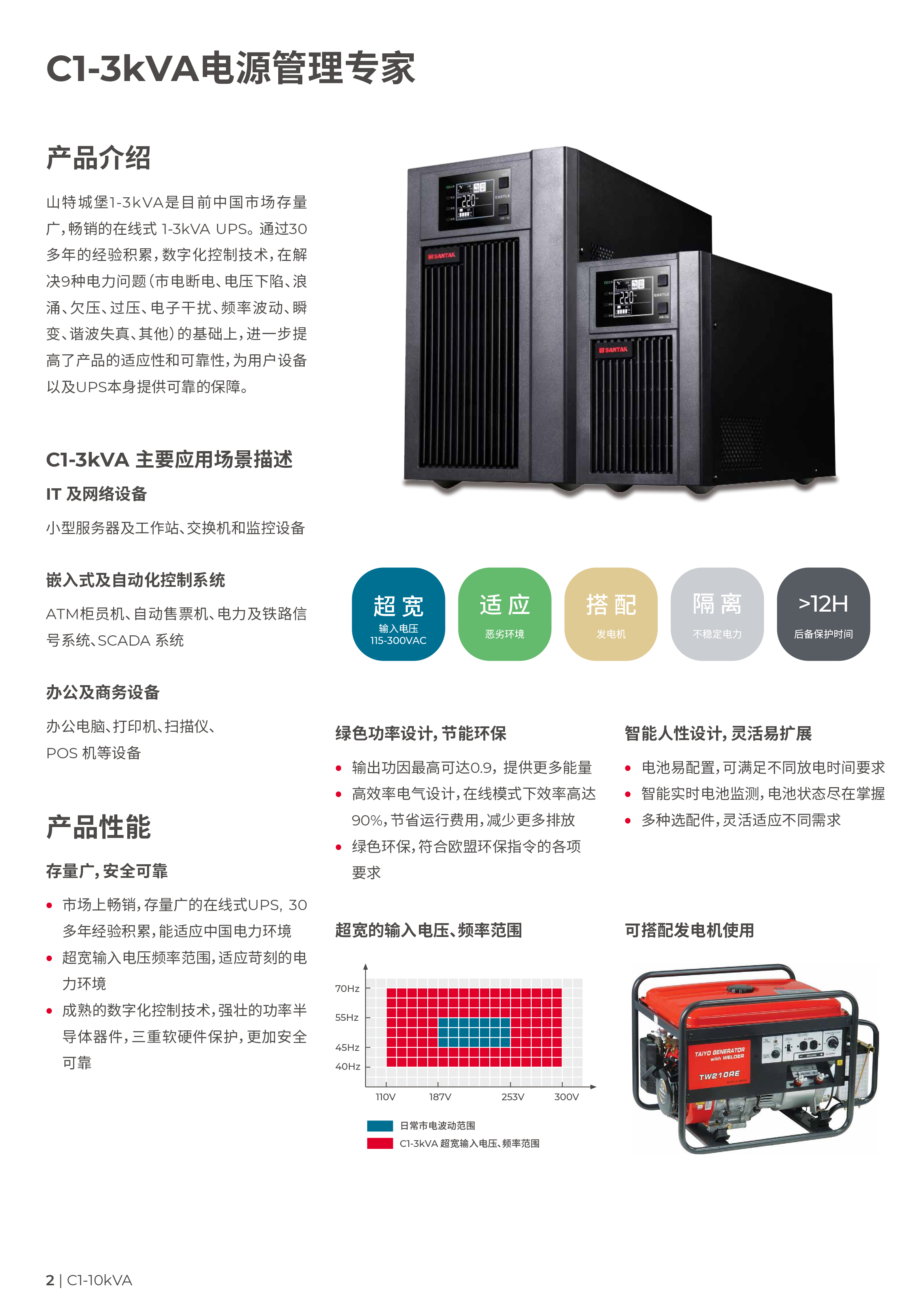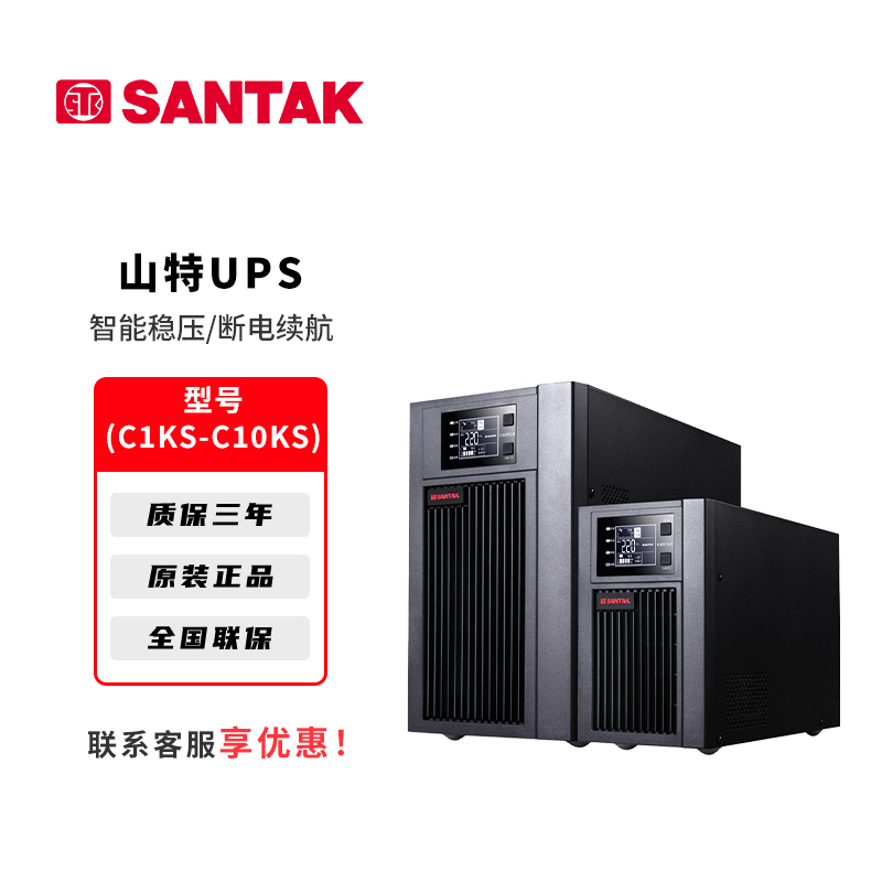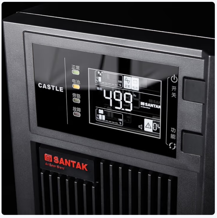 应用场景中小型服务器及工作站、交换机和监控设备ATM柜员机、自动售票机、电力及铁路信号系统、SCADA 系统办公电脑、打印机、扫描仪、POS 机等设备|存量广,安全可靠市场上畅销,存量广的在线式UPS, 30多年经验积累,能适应中国电力环境超宽输入电压频率范围,适应苛刻的电力环境成熟的数字化控制技术,强壮的功率半导体器件,三重软硬件保护,更加安全可靠绿色功率设计,节能环保输出功因最高可达0.9,提供更多能量高效率电气设计,在线模式下效率高达90%,节省运行费用,减少更多排放绿色环保,符合欧盟环保指令的各项要求超宽的输入电压、频率范围智能人性设计,灵活易扩展电池易配置,可满足不同放电时间要求智能实时电池监测,电池状态尽在掌握多种选配件,灵活适应不同需求