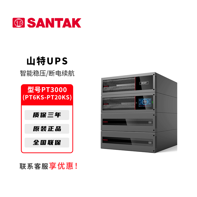 PT3000灵霄系列UPS基于山特三十多年的行业沉淀,秉承为用户的关键负载提供专业级不间断电源保护及有效管理的理念进行开发设计。