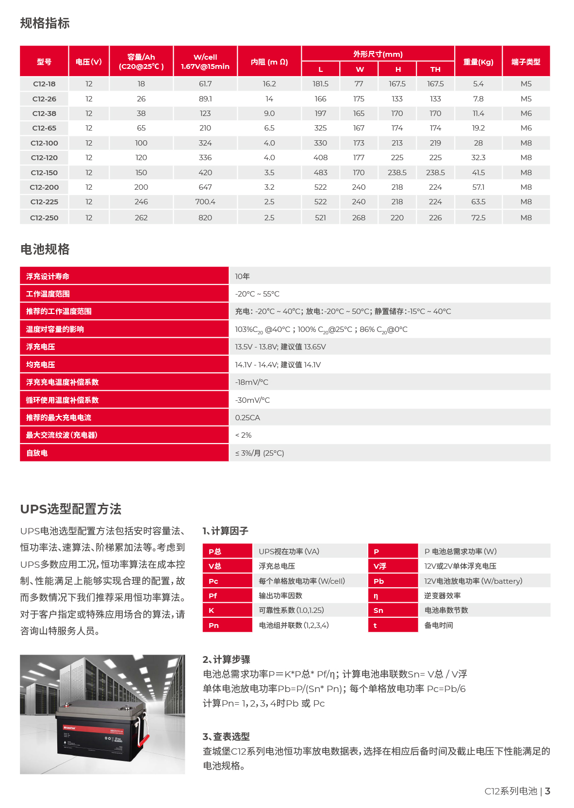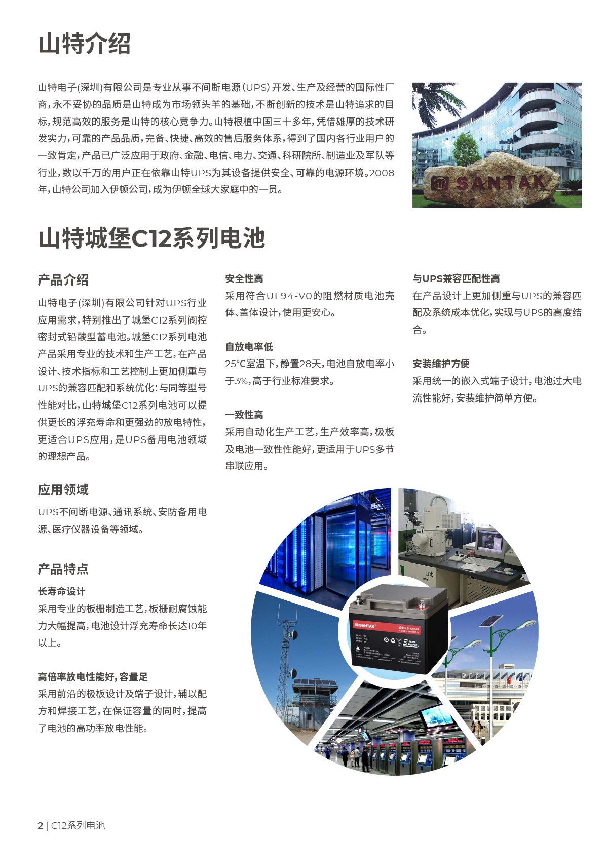山特城堡系列蓄电池采用先进的技术和生产工艺,在产品设计、技术指标和工艺控制上侧重于与UPS的兼容匹配和系统优化。并设计十年浮充寿命,选用V0防火等级外壳,适合UPS应用,是UPS备用电池领域的优势产品。