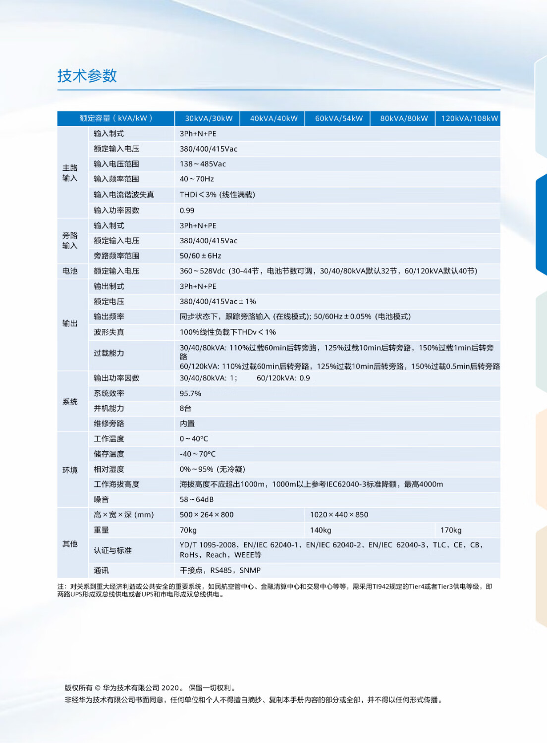 华为UPS电源UPS5000-A系列30K-600K电脑机房服务器稳压备用