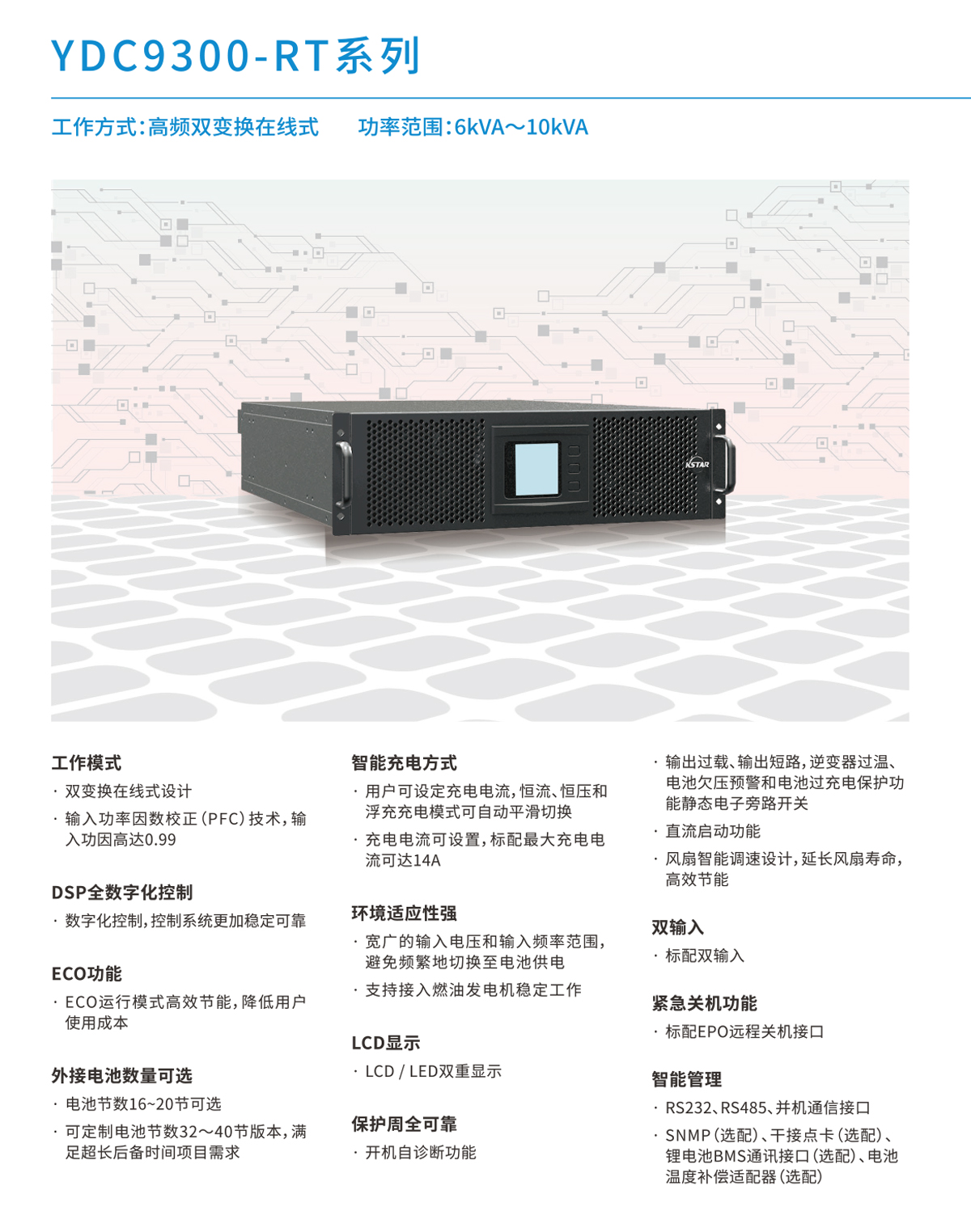 科士达UPS不间断电源YDC9300RT系列企业机房服务器备用电源