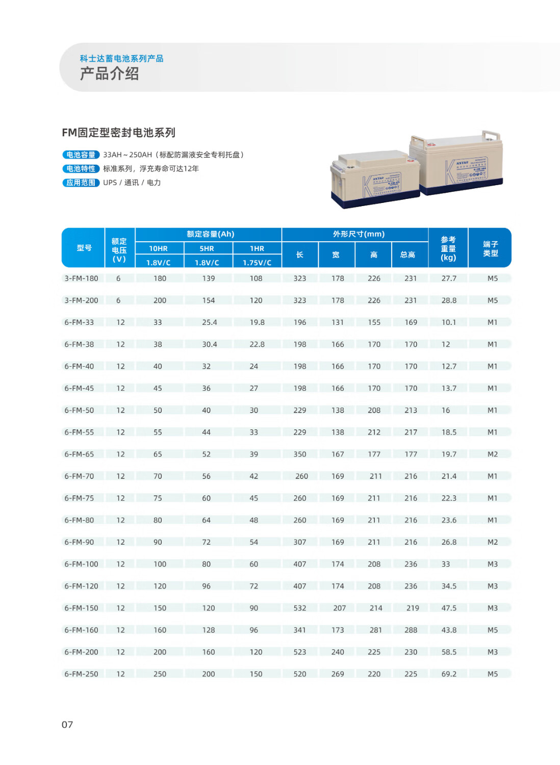 KSTAR科士达FM系列密封免维护铅酸蓄电池适用于UPS电源/EPS电源/直流屏