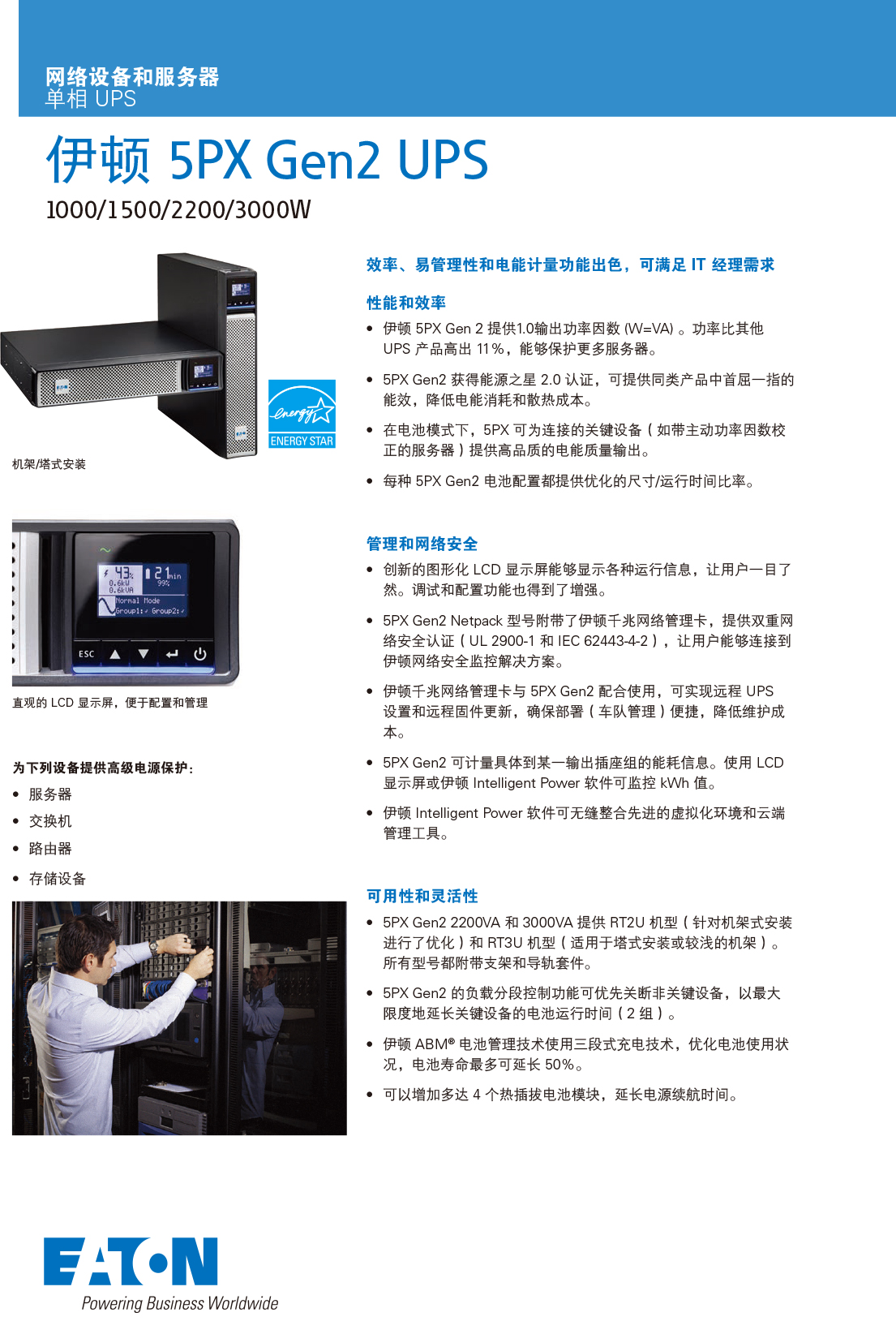 伊顿UPS不间断电源5PX系列1000-3000IRT2UG2企业机房服务器备用电源
