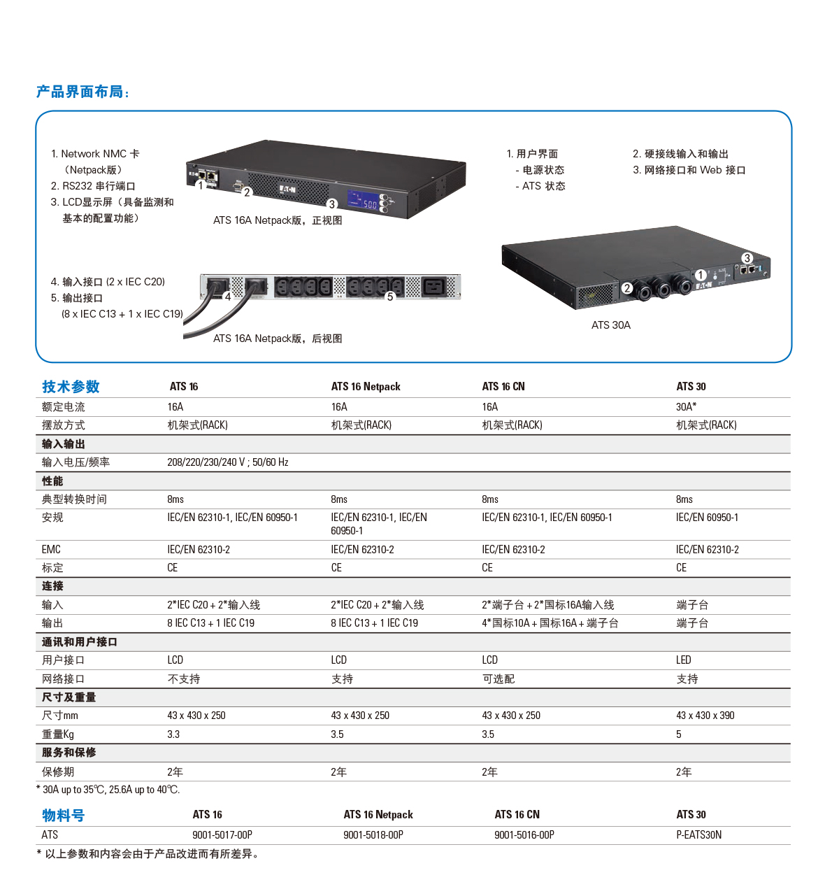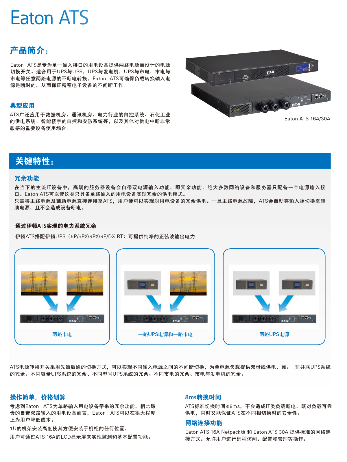 伊顿UPS不间断电源ATS系列16N-30N企业机房服务器备用电源
