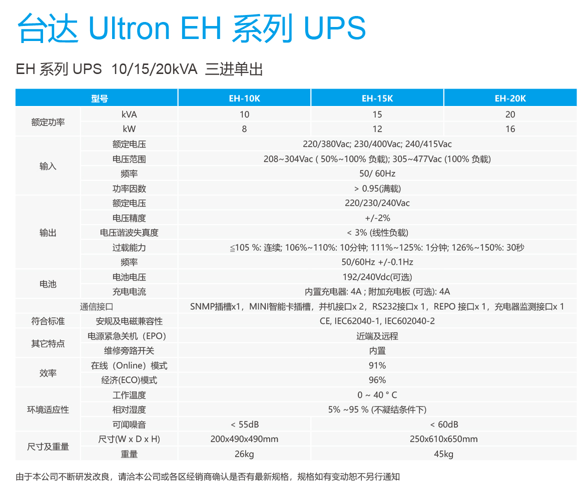 台达UPS不间断电源EH系列10-20K电脑机房服务器稳压备用