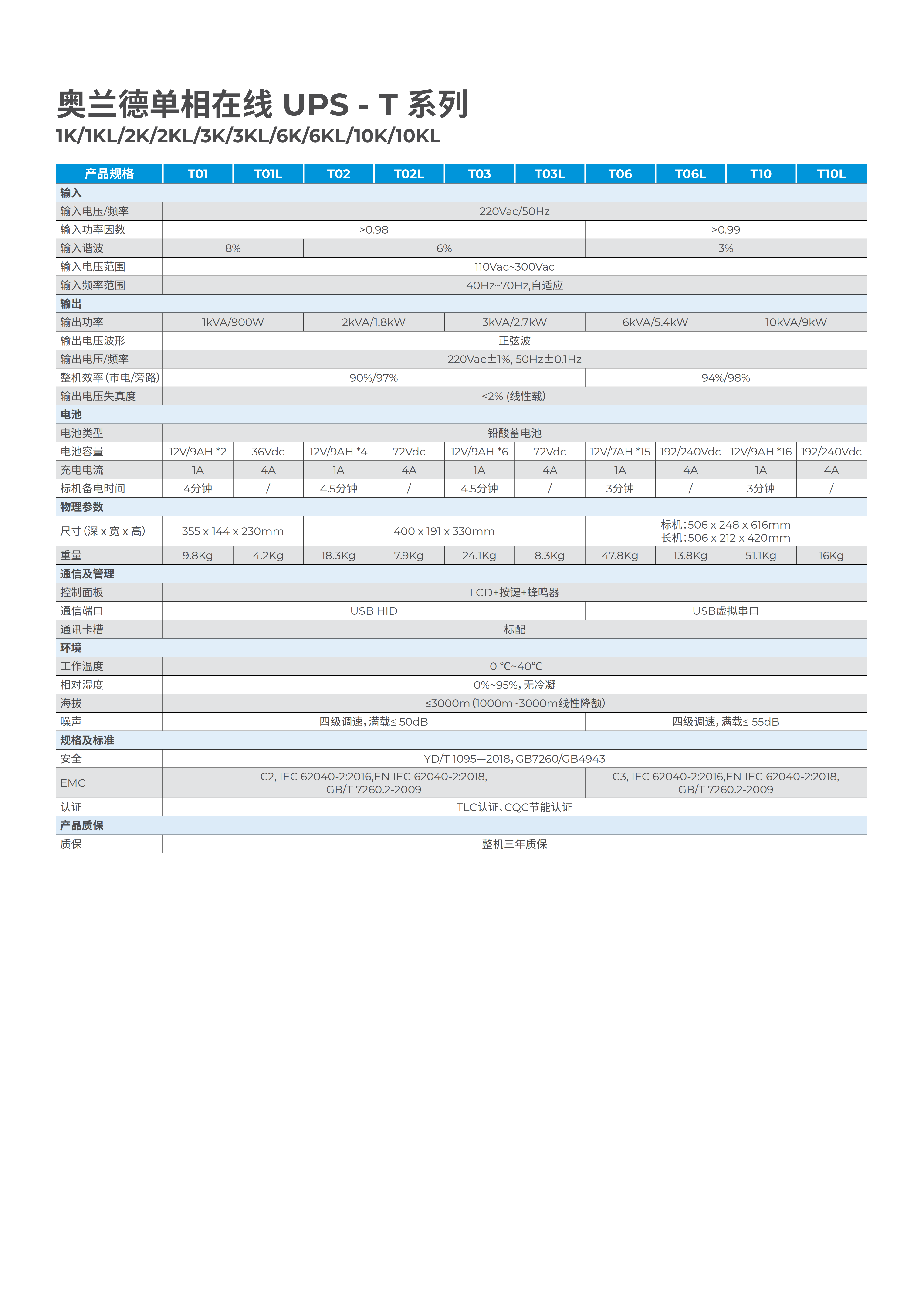 奥兰德UPS-T系列